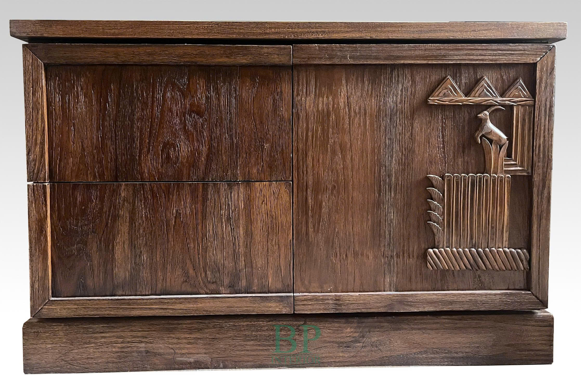 Họa tiết đồng bộ: Cánh tủ được trang trí bằng hình ảnh chim muông và cành lá khảm đen, tạo sự kết nối chặt chẽ với các sản phẩm khác trong bộ sưu tập.